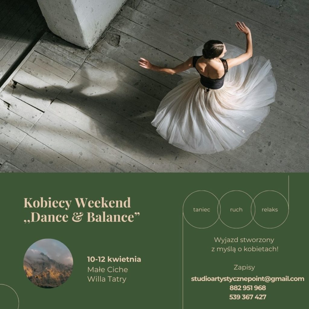 Serdecznie zapraszamy Cię na wyjątkowy wyjazd Kobiecy Weekend Dance&Balance, który odbędzie się w dniach 10 -12 kwietnia w Małym Cichym. Weekendowy reset to czas, w którym możesz na chwilę zatrzymać codzienność, zadbać o swoje ciało i wewnętrzną równowagę. W programie czekają na Ciebie: zajęcia taneczne (taniec współczesny, lady style) pilates…